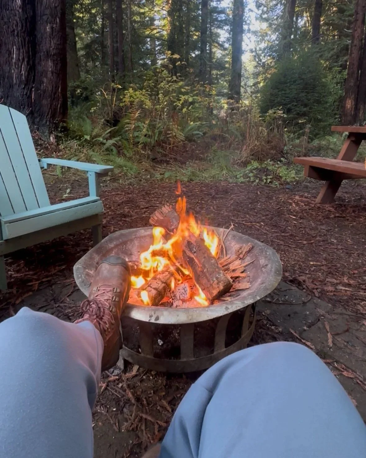 A flame rises in the forest
